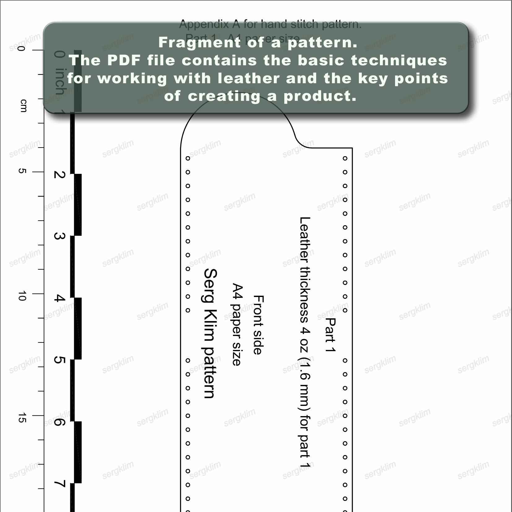 The download comes with some basic leather techniques. It also contains templates in real size of all parts of the product. This will allow you to make a finished product. The PDF pattern is for hand stitch.