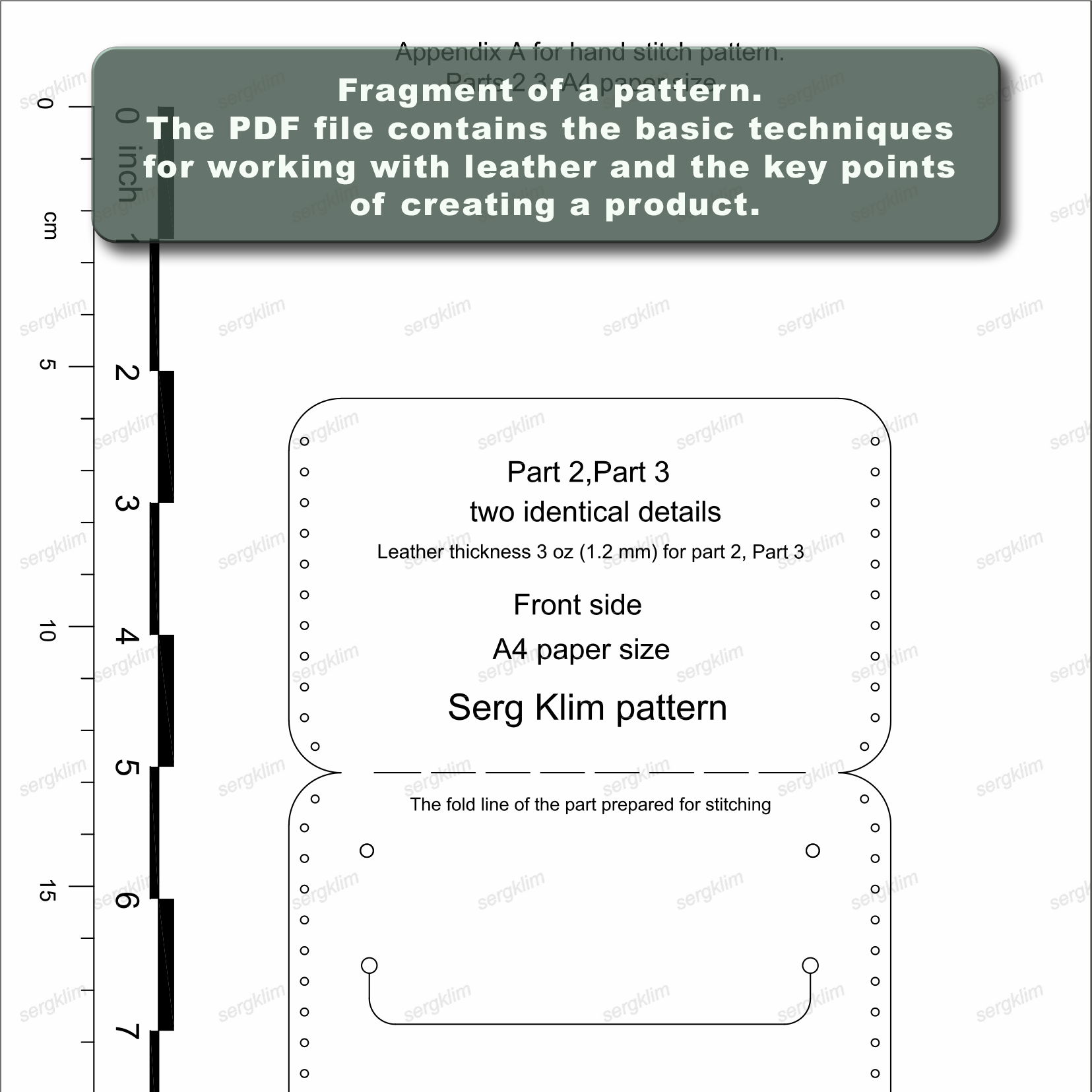 The download comes with some basic leather techniques. It also contains templates in real size of all parts of the product. This will allow you to make a finished product. The PDF pattern is for hand stitch.