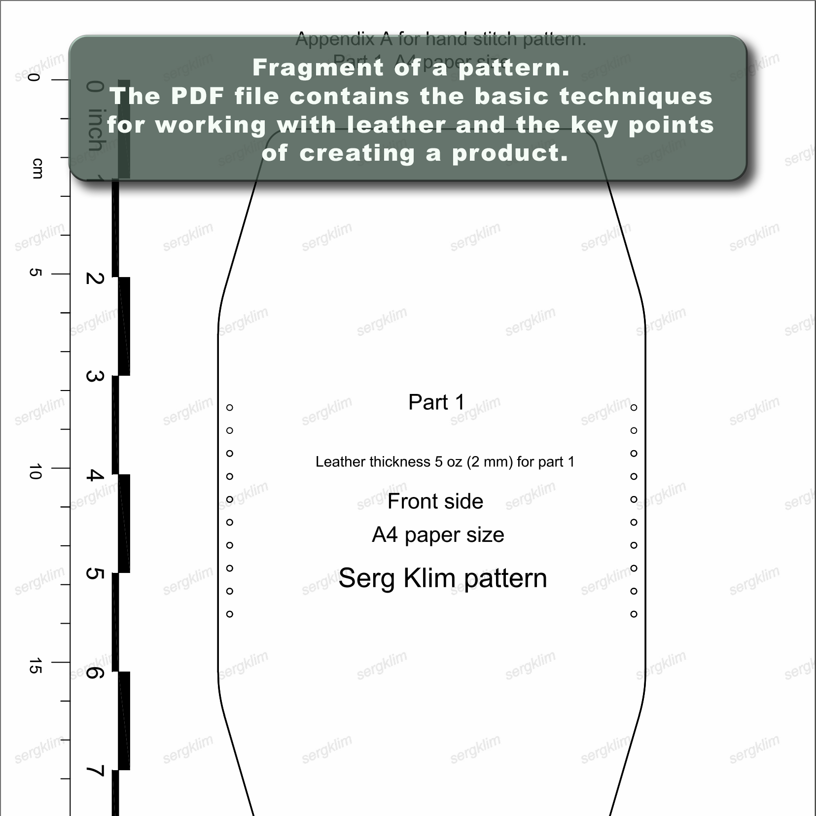 The download comes with some basic leather techniques. It also contains templates in real size of all parts of the product. This will allow you to make a finished product. The PDF pattern is for hand stitch.