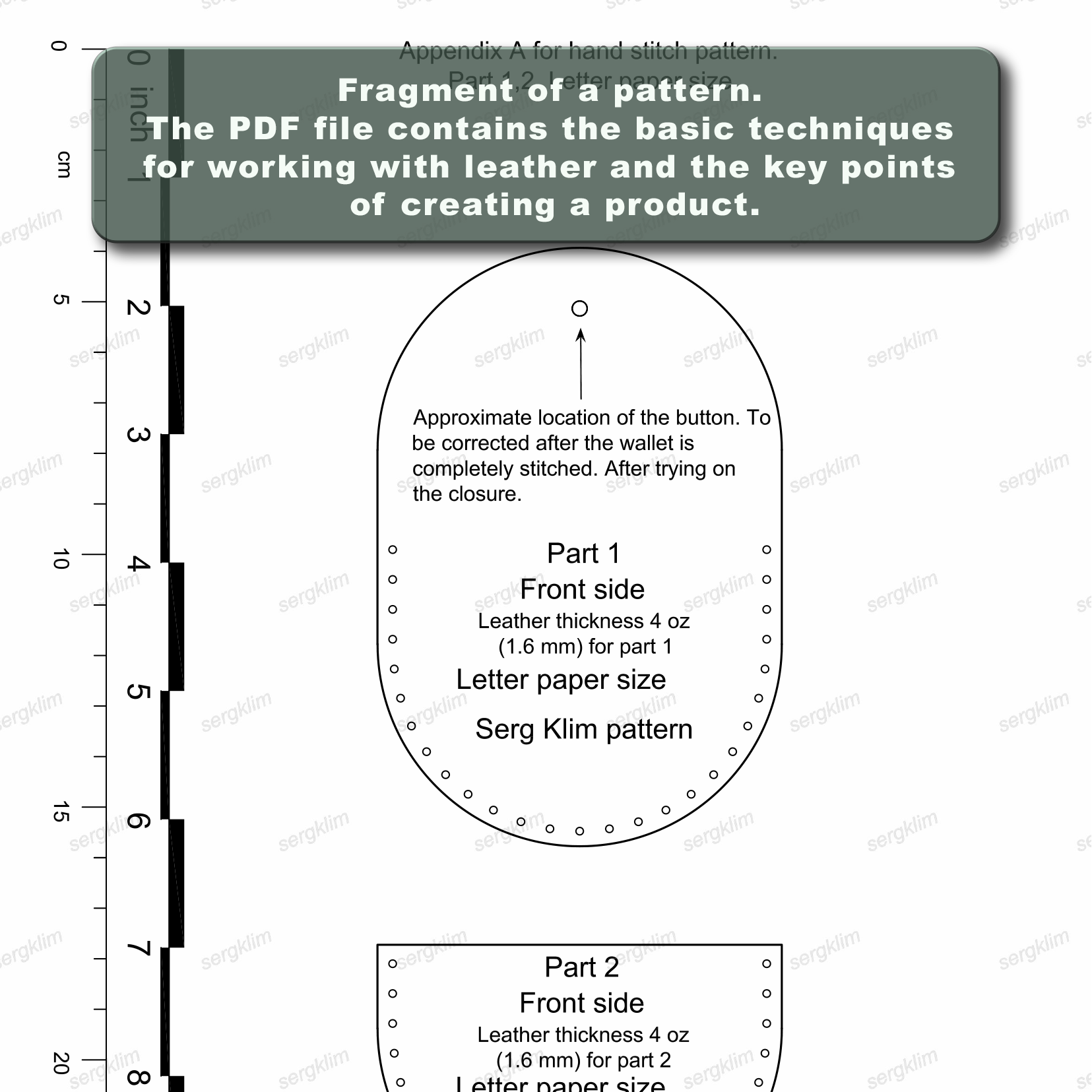 The download comes with some basic leather techniques. It also contains templates in real size of all parts of the product. This will allow you to make a finished product. The PDF pattern is for hand stitch.