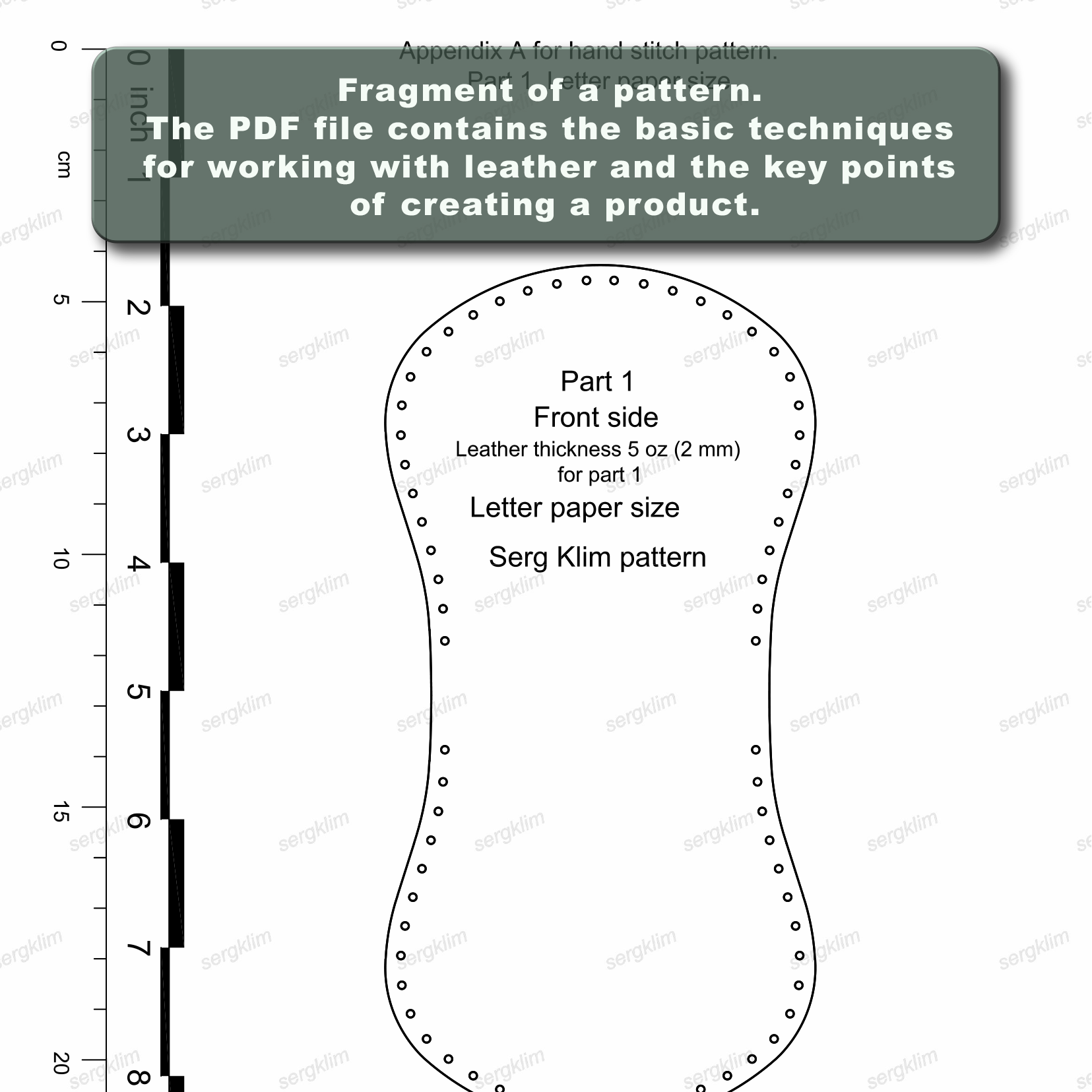 The download comes with some basic leather techniques. It also contains templates in real size of all parts of the product. This will allow you to make a finished product. The PDF pattern is for hand stitch.